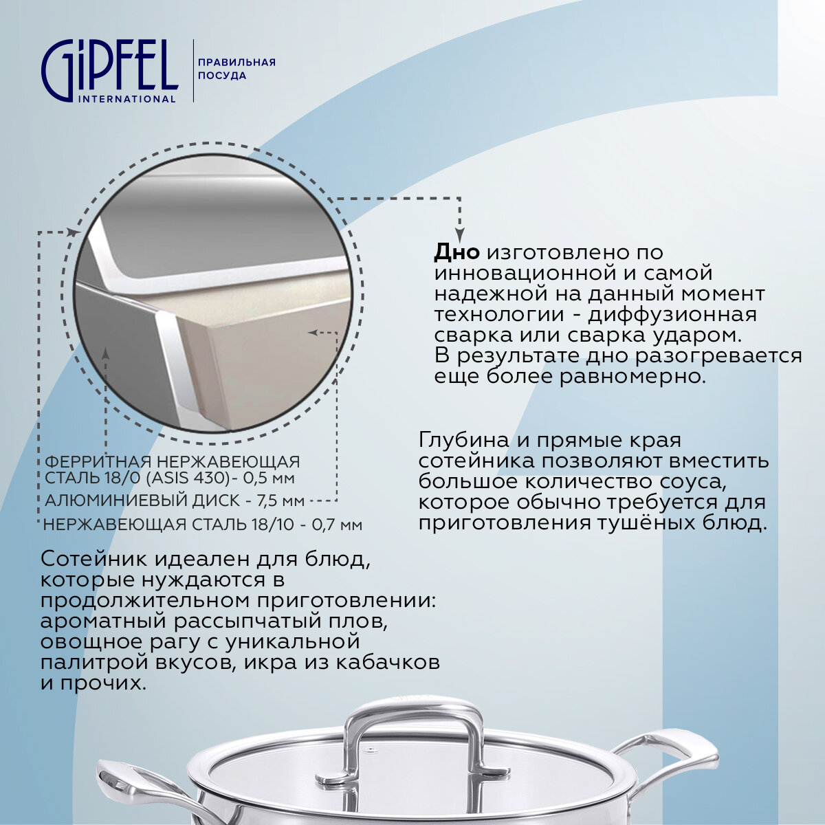 | Дополнительная информация | материал крышки: стекло; материал ручки: сталь; многослойное дно |