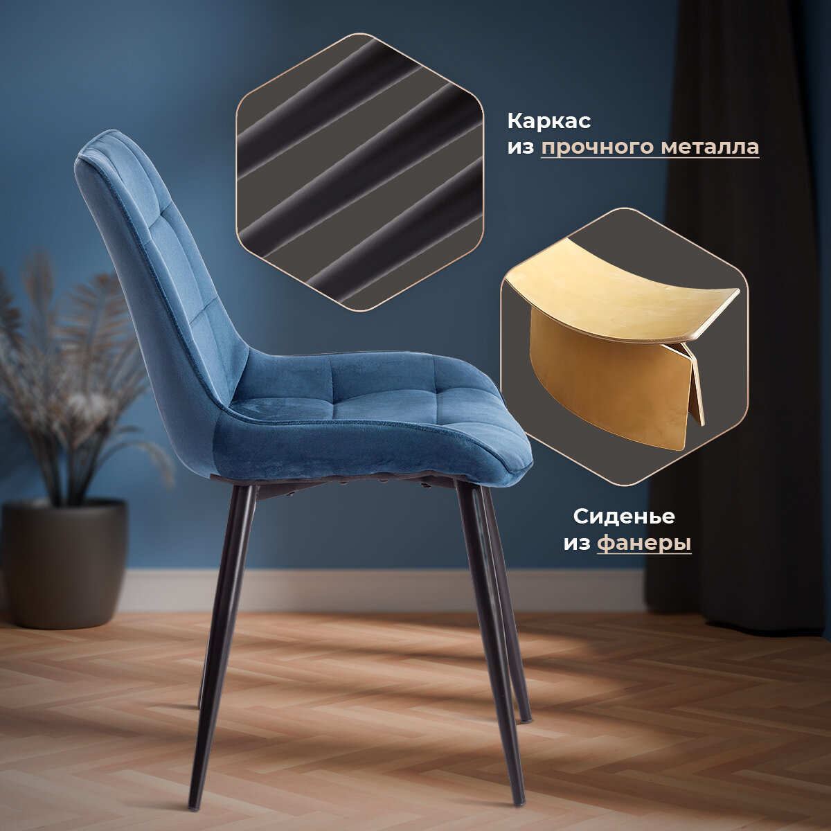 СохранитьКомплект стульев для кухни TetChair ABRUZZO ( mod. 8060) со спинкой, 4 шт., вельвет, синий/черный интересное: