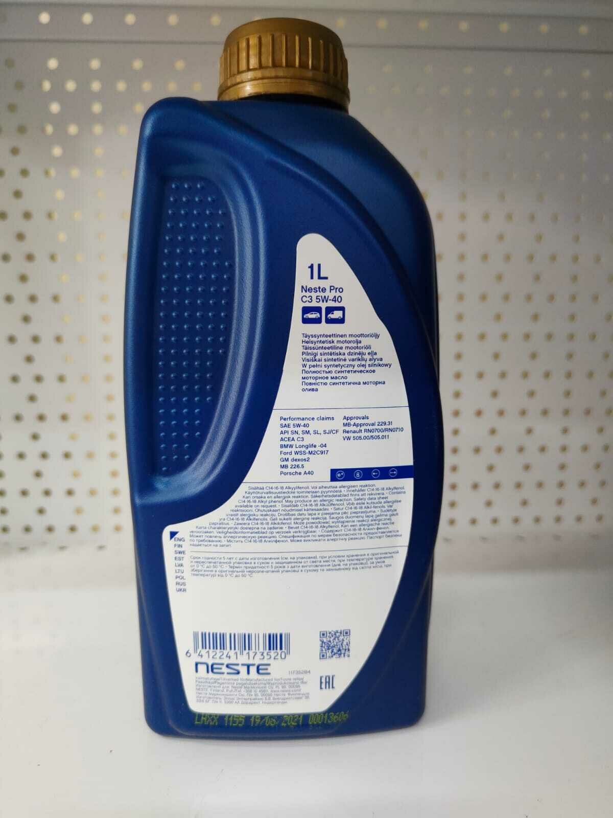 Купить NESTE 117352 Масо моторное Neste Pro C3 5W-40 1 поностью синтетическое