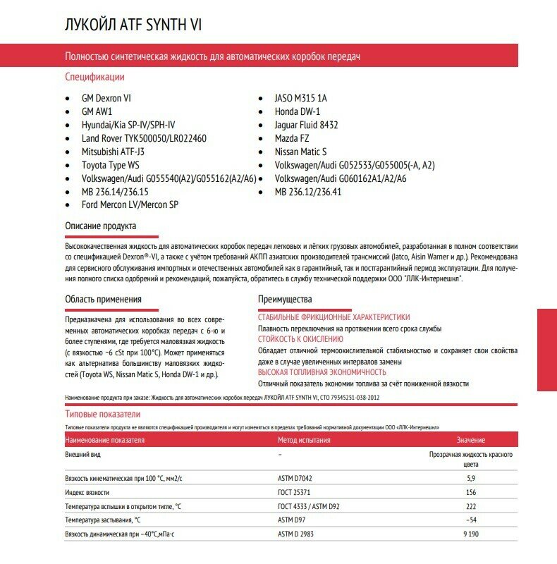 Ниже Вы можете прочитать отзывы на Масло трансмиссионное ЛУКОЙЛ ATF SYNTH VI синтетика 4л 3722205, ознакомится с подробными характеристиками, посмотреть интересные обзоры и фотографии на Масло трансмиссионное ЛУКОЙЛ ATF SYNTH VI синтетика 4л 3722205.