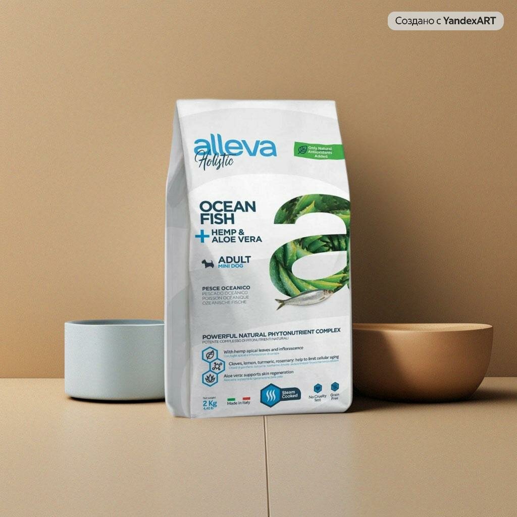ALLEVA HOLISTIC DOG для собак Adult Ocean Fish Mini / с океанической рыбой, коноплей и алое вера 2кг 2325, (1 шт)