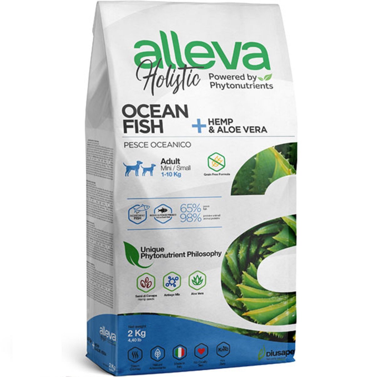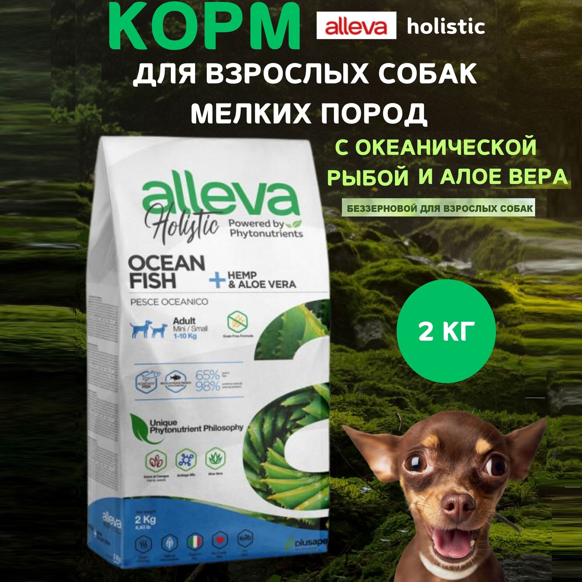 ALLEVA HOLISTIC DOG для собак Adult Ocean Fish Mini / с океанической рыбой, коноплей и алое вера 2кг 2325, (1 шт)