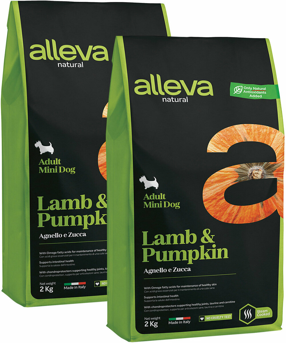 Купить ALLEVA NATURAL ADULT DOG MINI LAMB & PUMPKIN низкозерновой для взрослых собак маленьких пород с ягненком и тыквой (2 + 2 кг)