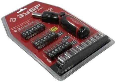 ЗУБР Универсал-31 набор: реверсивно-рычажная отвертка с насадками 31 шт