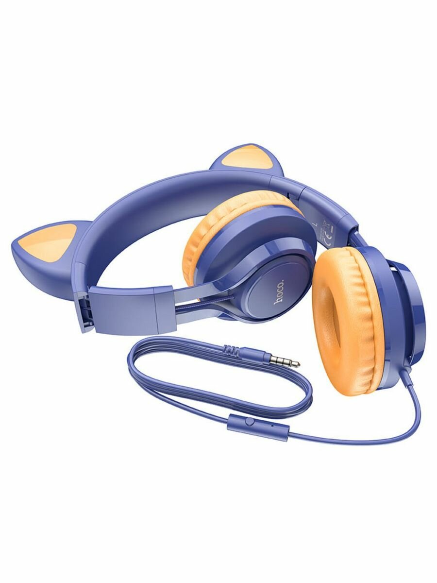 Наушники проводные накладные Hoco W36 Cute Cat полуночный синий