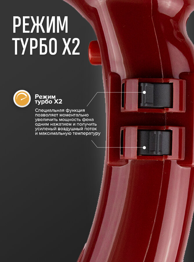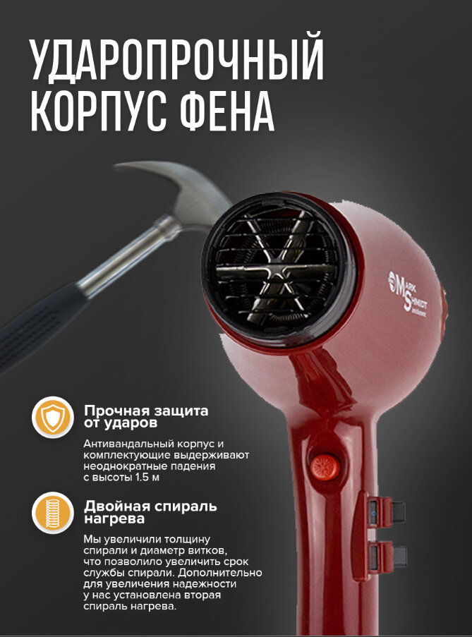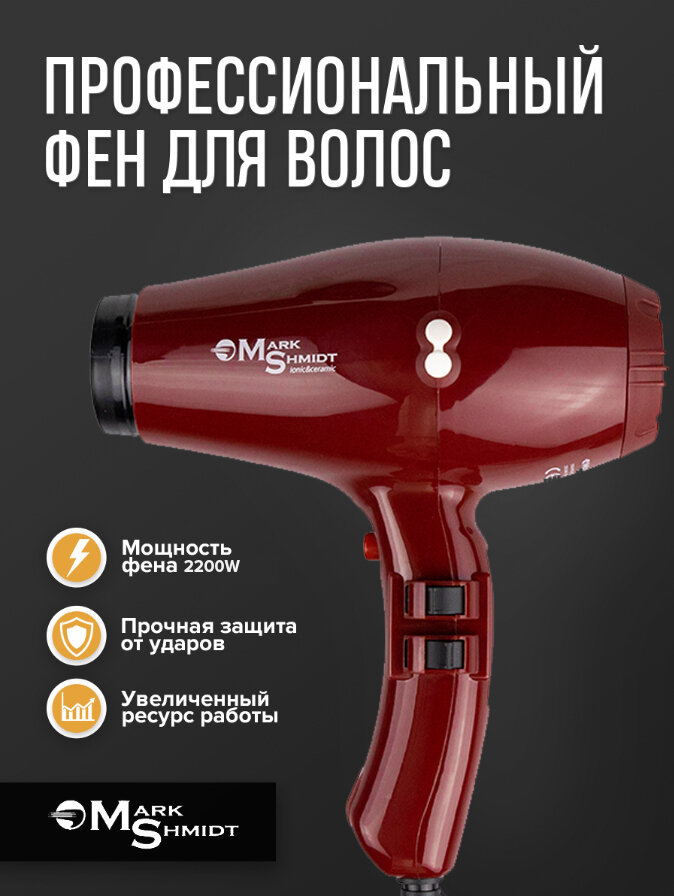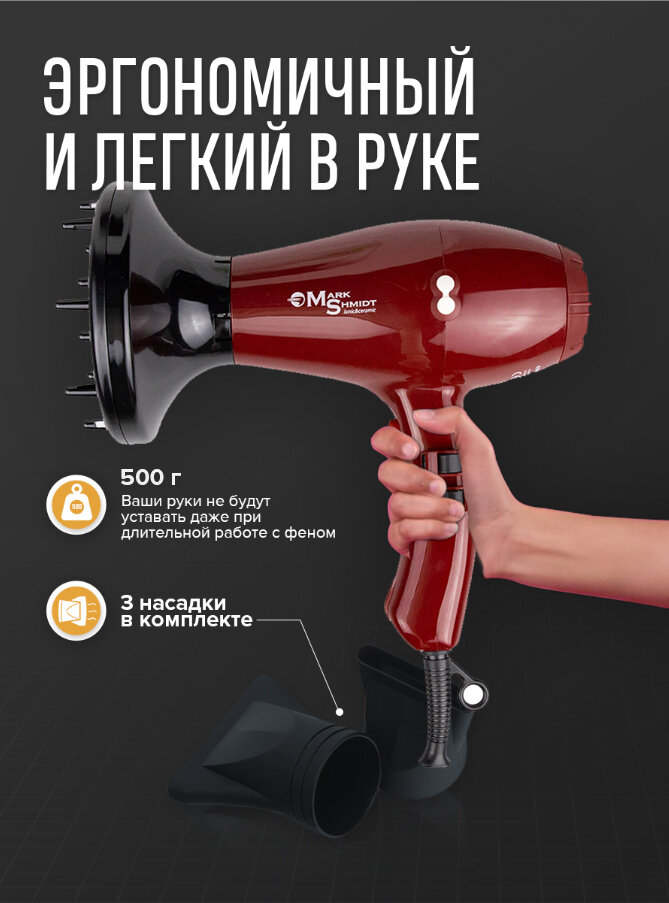 Mark Shmidt Professional / Фен профессиональный с диффузором 6611 ionic/ceramic 2200Dn / Фен для укладки волос красный