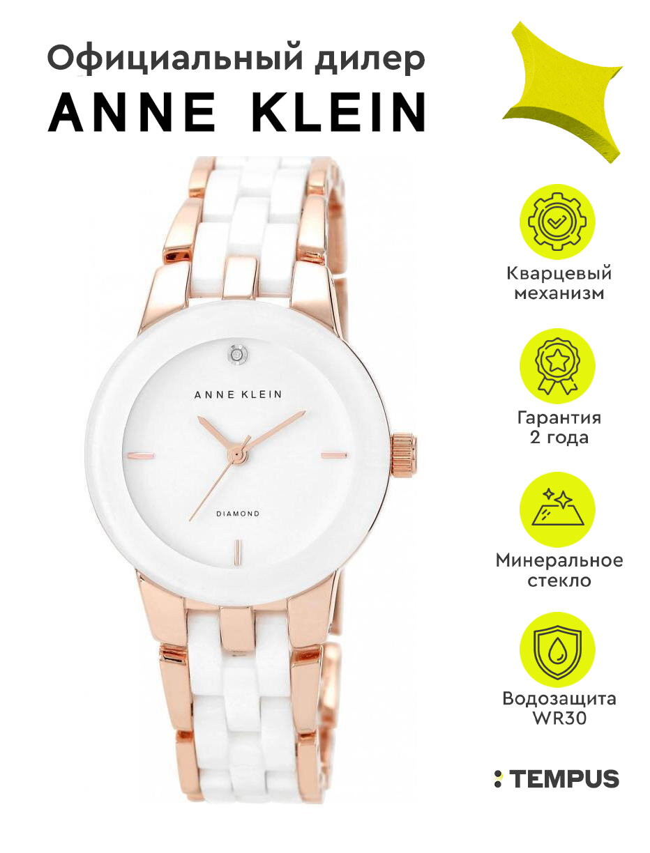 Наручные часы ANNE KLEIN 1610WTRG кварцевые, водонепроницаемые