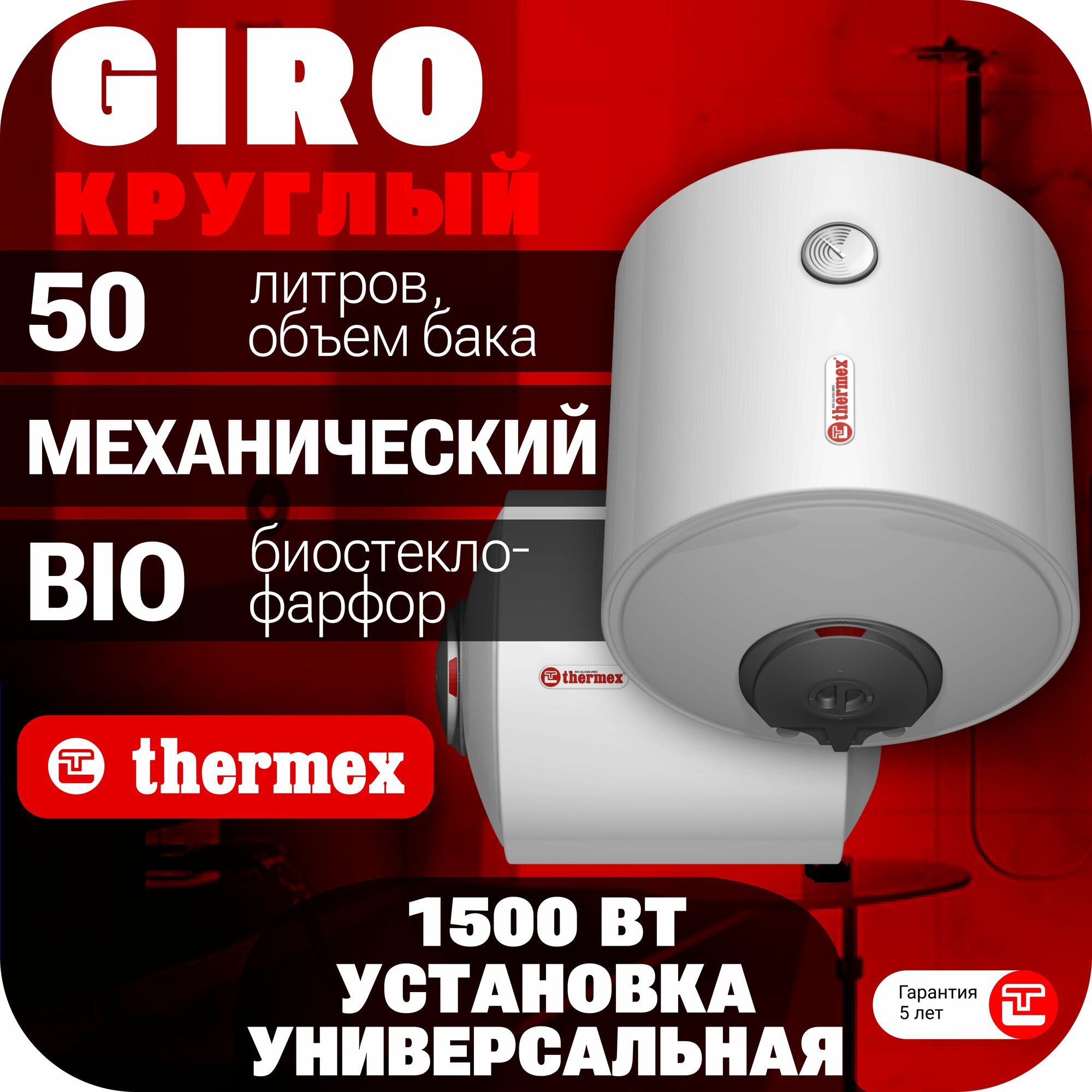 Водонагреватель Thermex Giro 50, накопительный, 1.5кВт, 50л, белый [эдэб00638]