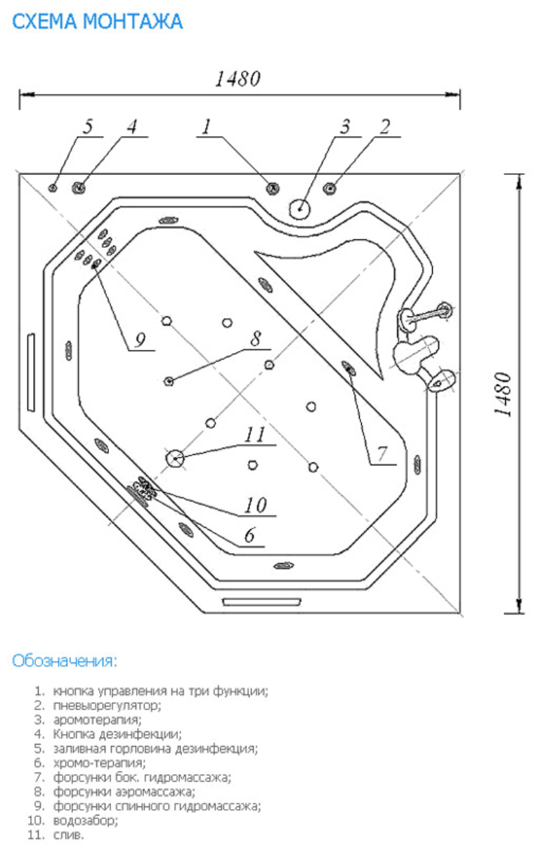 | Подробная комплектация | ванна, каркас, фронтальная панель |