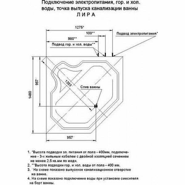 Акриловая ванна Aquatek Лира 150x150 LIR150-0000032 вклеенный каркас
