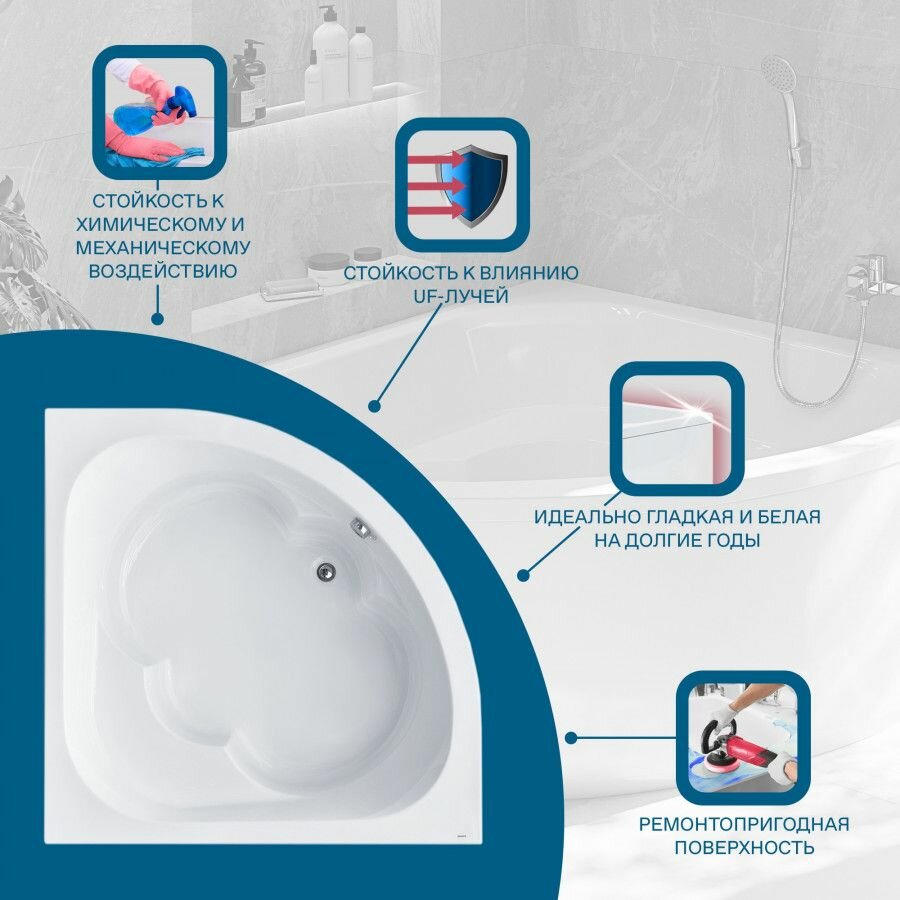 Акриловая ванна Santek Канны 150х150см, арт. 1WH111983, угловая симметричная
