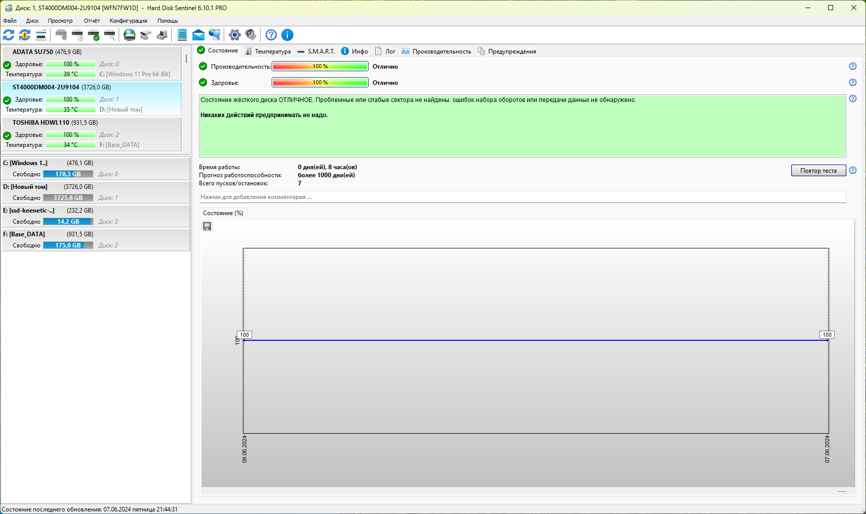 | Минусы: | Был куплен в конце 2021 года , С осени 2022 года стали появляться странные постукивания/щелчки и ладно , если не часто , так чем больше времени проходило , тем более они продолжительные . На сегодняшний момент , они постоянные(даже если комп в простое) и это конкретно раздражает. Диск не ронял , нагревался макс до 30-35гр. Пробовал обратиться по гарантии , в ответ - битых секторов нет ,ошибок нет , посторонний шум , это не гарантийный случай . |