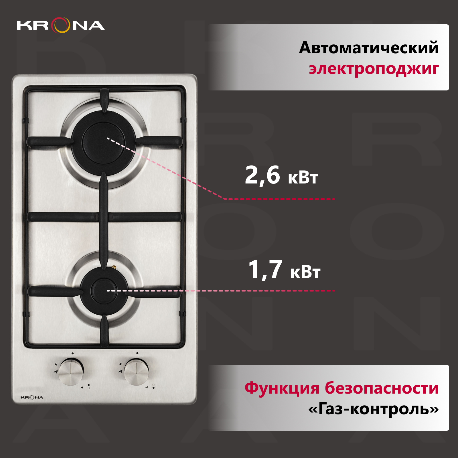 Варочная поверхность KRONA PARTITA 30 IX встраиваемая газовая (независимая) нержавеющая сталь
