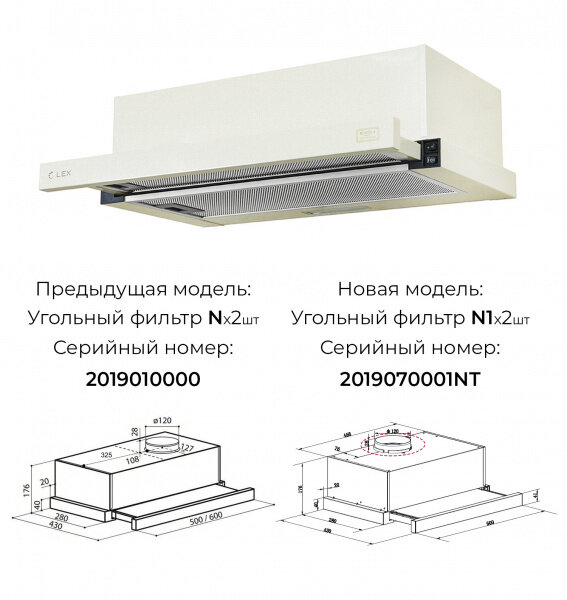 Встраиваемая вытяжка LEX Hubble 500 Ivory Light, слоновая кость интересное: