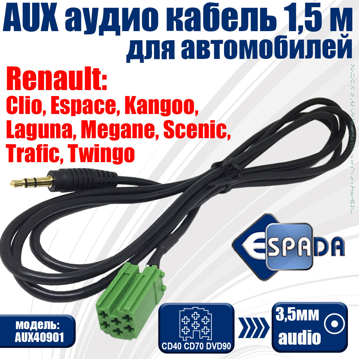 Espada AUX to 3.5mm Audio 1.5m для Renault Clio/Espace/Kangoo/Laguna/Megane/Scenic/Trafic/Twingo AUX40901