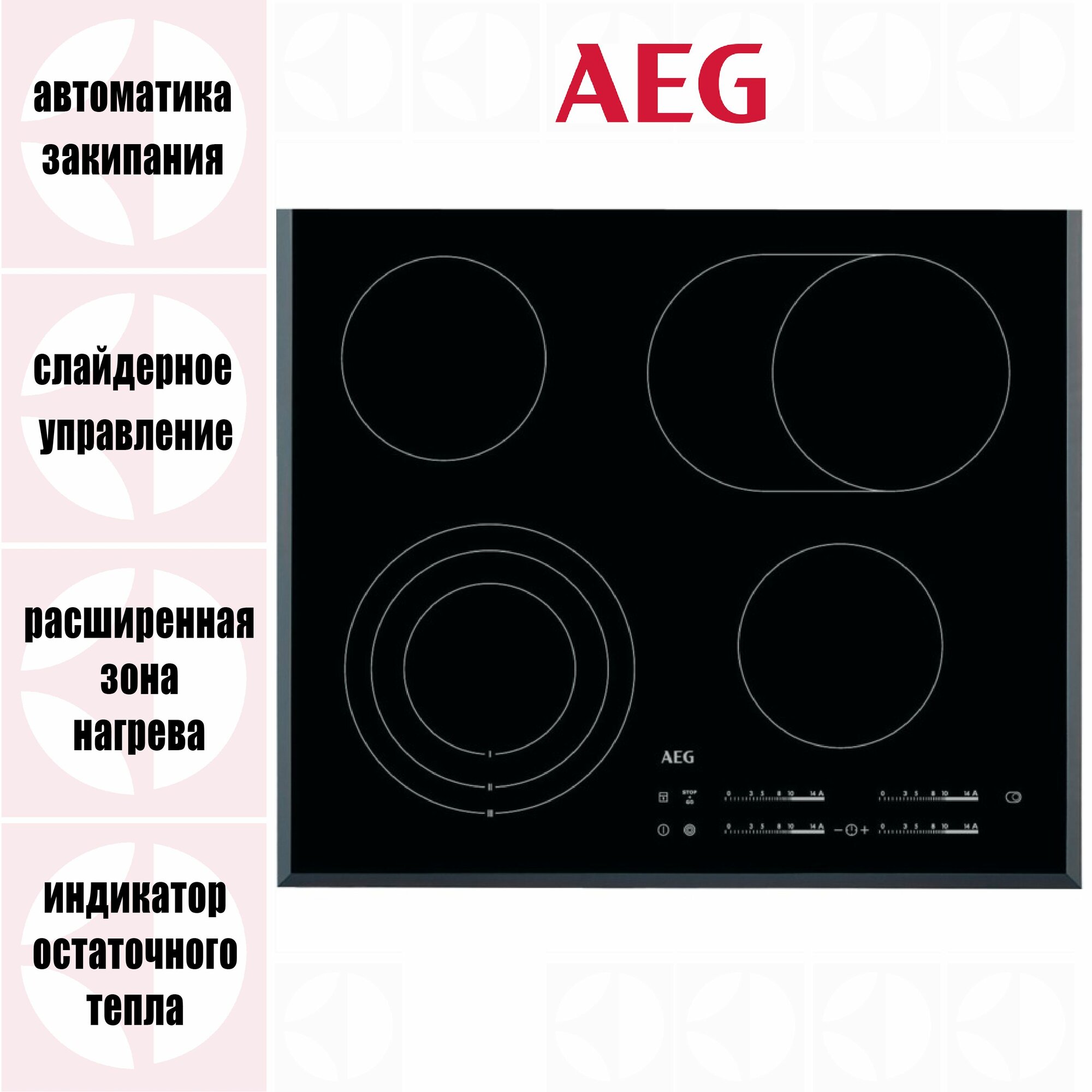 Уже имея раньше плиту со стеклокерамикой, долго и вдумчиво выбирал варочную панель на новую кухню. И оказалось что в этой AEG удачно сочетается главное: - очень удобная регулировка температуры с помощью "слайдеров" (не нужно долго нажимать стрелочки "вверх"-"вниз", как на многих других моделях, устанавливая нужную температуру), слайдер позволяет изменить температуру одним касанием; - наличие 3-х контурной зоны здорово облегчает пользование кастрюльками разных диаметров (это действительно важно, поскольку у многих других панелей самые ходовые, т.е. расположенные с ближнего края зоны, на мой взгляд, слишком малы для обычно используемых кастрюль и сковородок); - возможность удобной установки таймера на автовыключения любой из конфорок; причём можно включить разную продолжительность таймера для каждой конфорки одновременно; - весьма гуманная цена. |