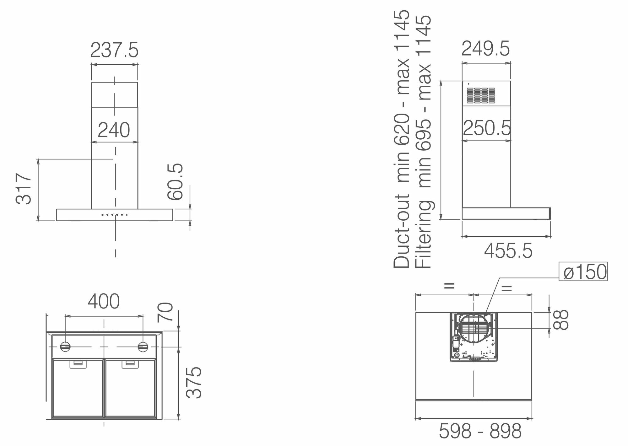 | Режим работы | отвод / циркуляция воздуха |