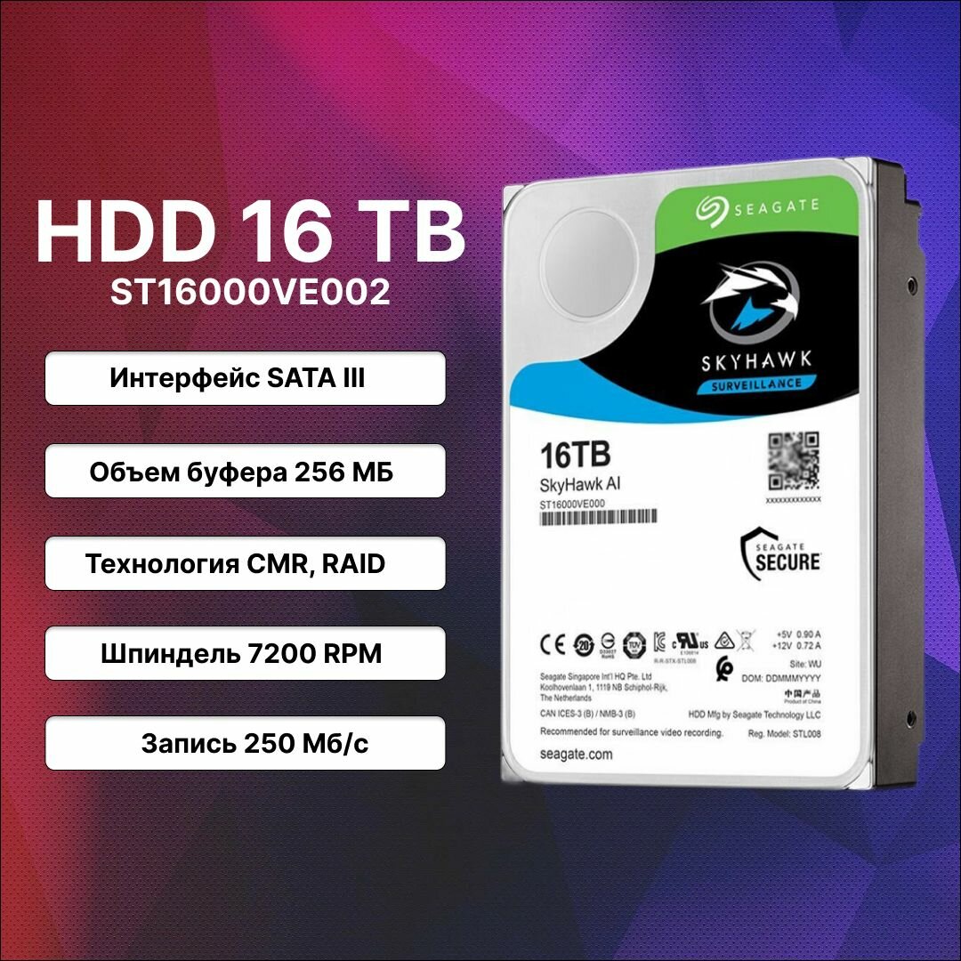 Купить Жесткий диск Seagate Skyhawk 16 Tb ST16000VE002