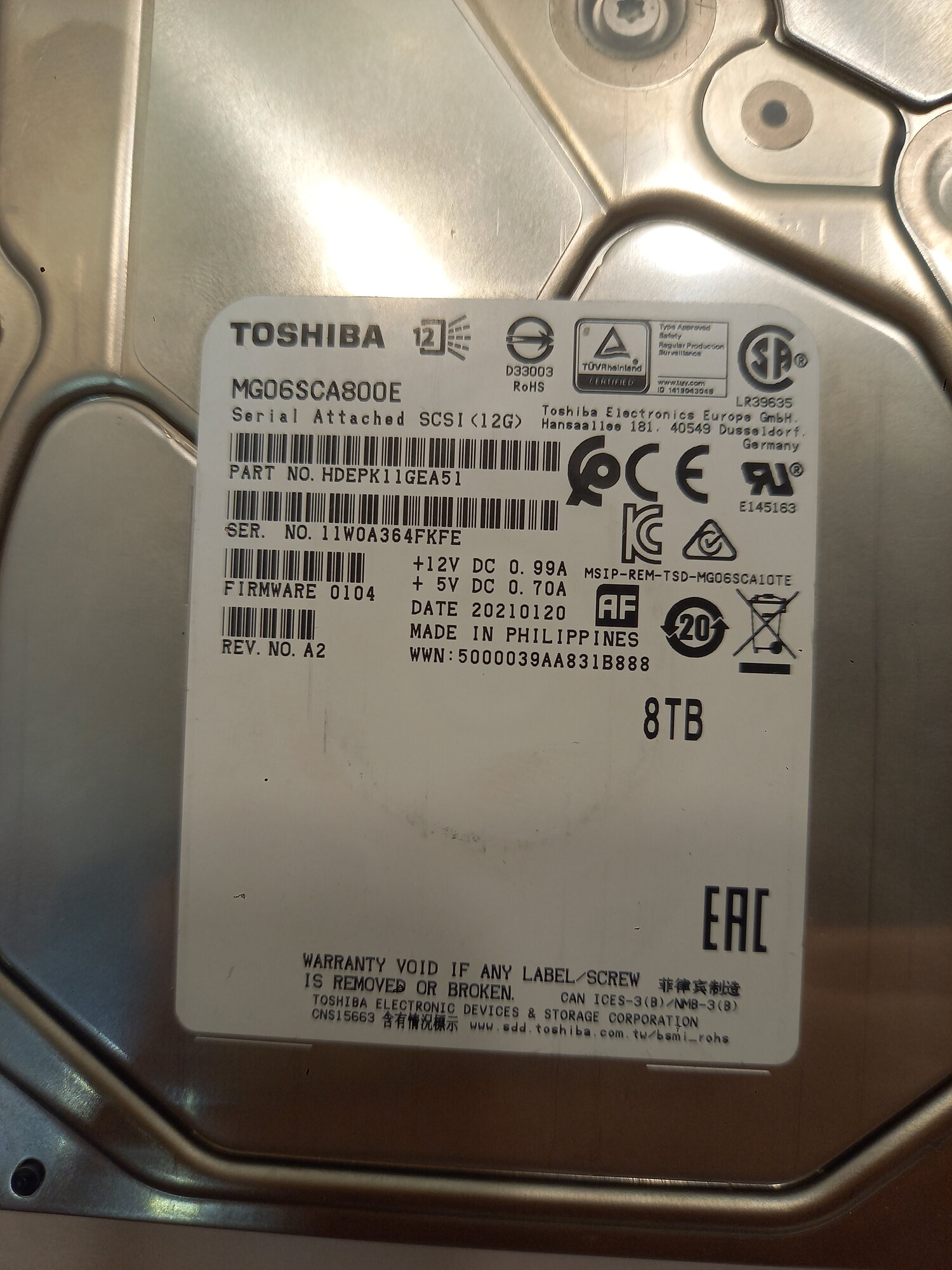 Жесткий диск Toshiba Enterprise Capacity 8ТБ HDD SAS 3.0 3.5" (MG06SCA800E) интересное: