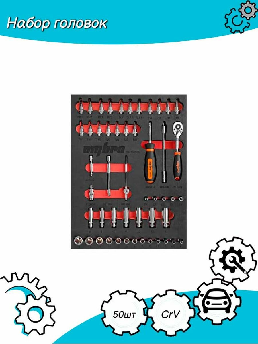 Набор Инструментов Головки Головкибиты Трещотка Удлинители Воротки Ложементе OMBRA OMT50STE