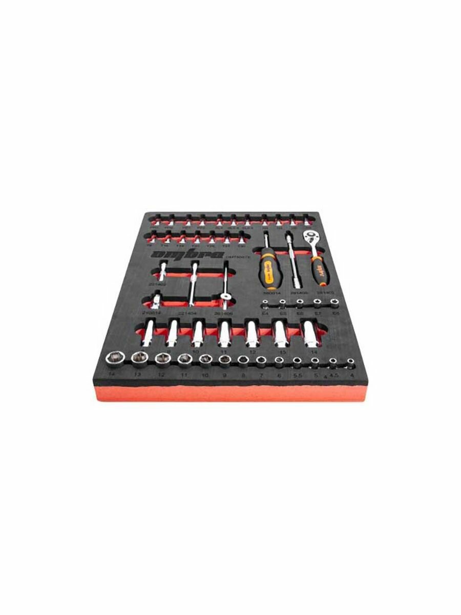 Набор головок 1/4" 50 пр. 6 гр. 4-14 мм с аксессуарами EVA ложементе 280х375 мм Ombra OMT50STE