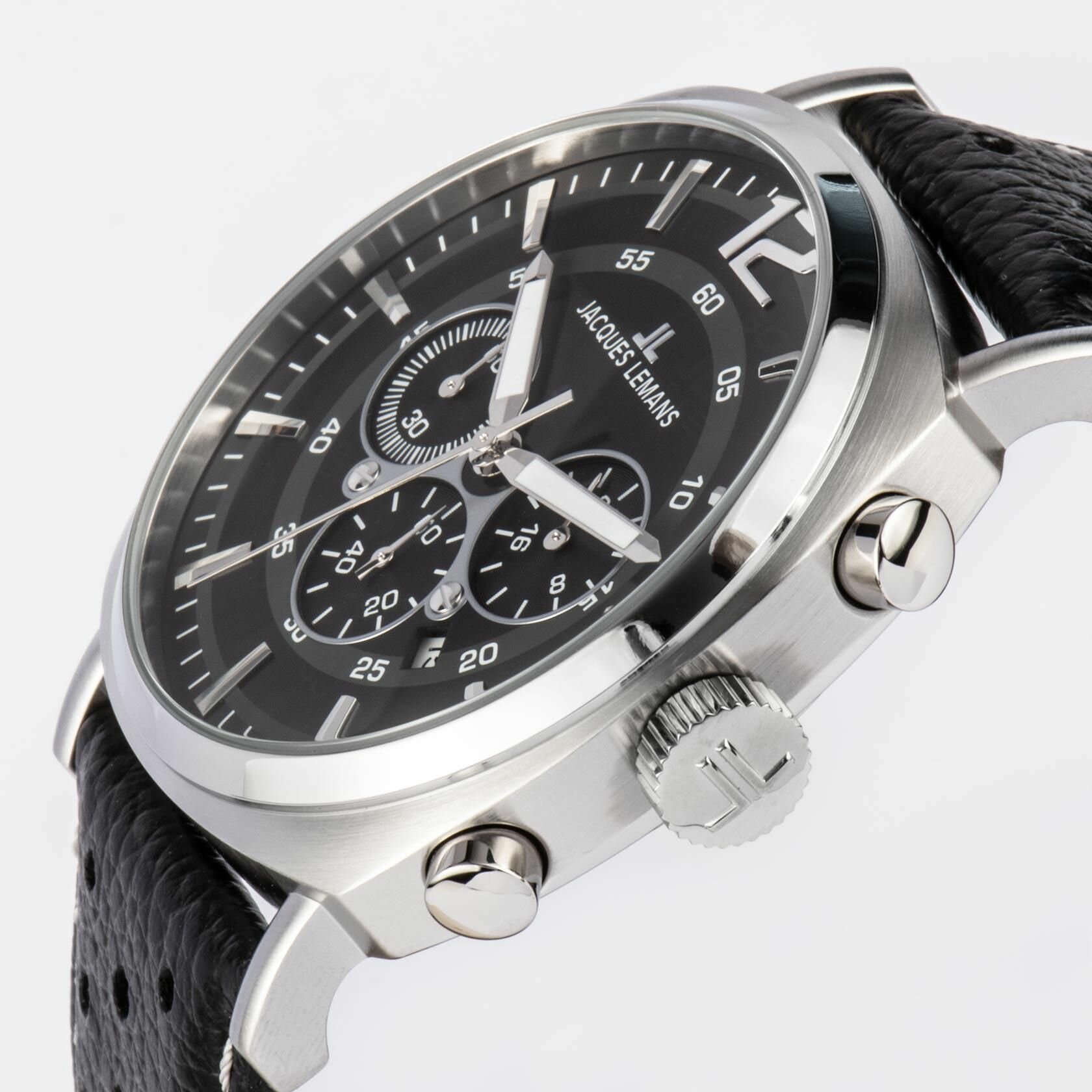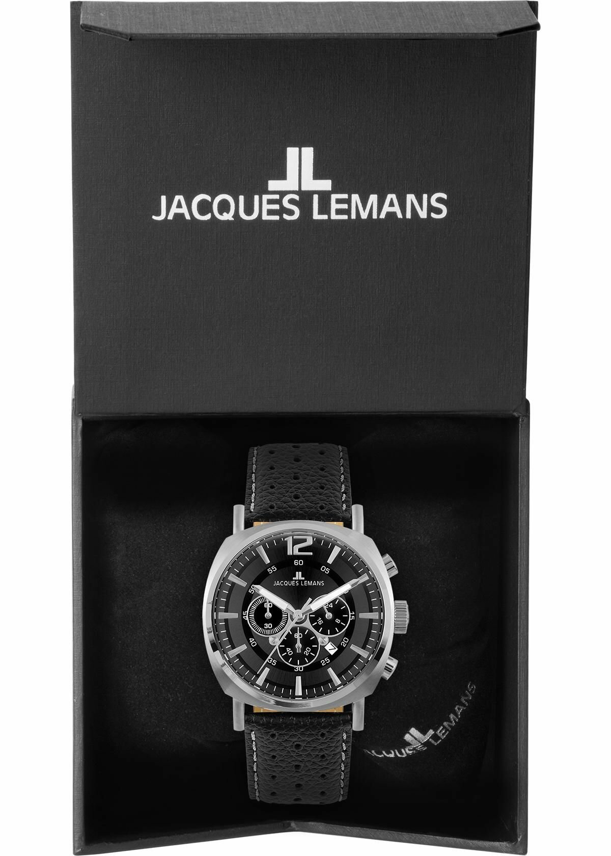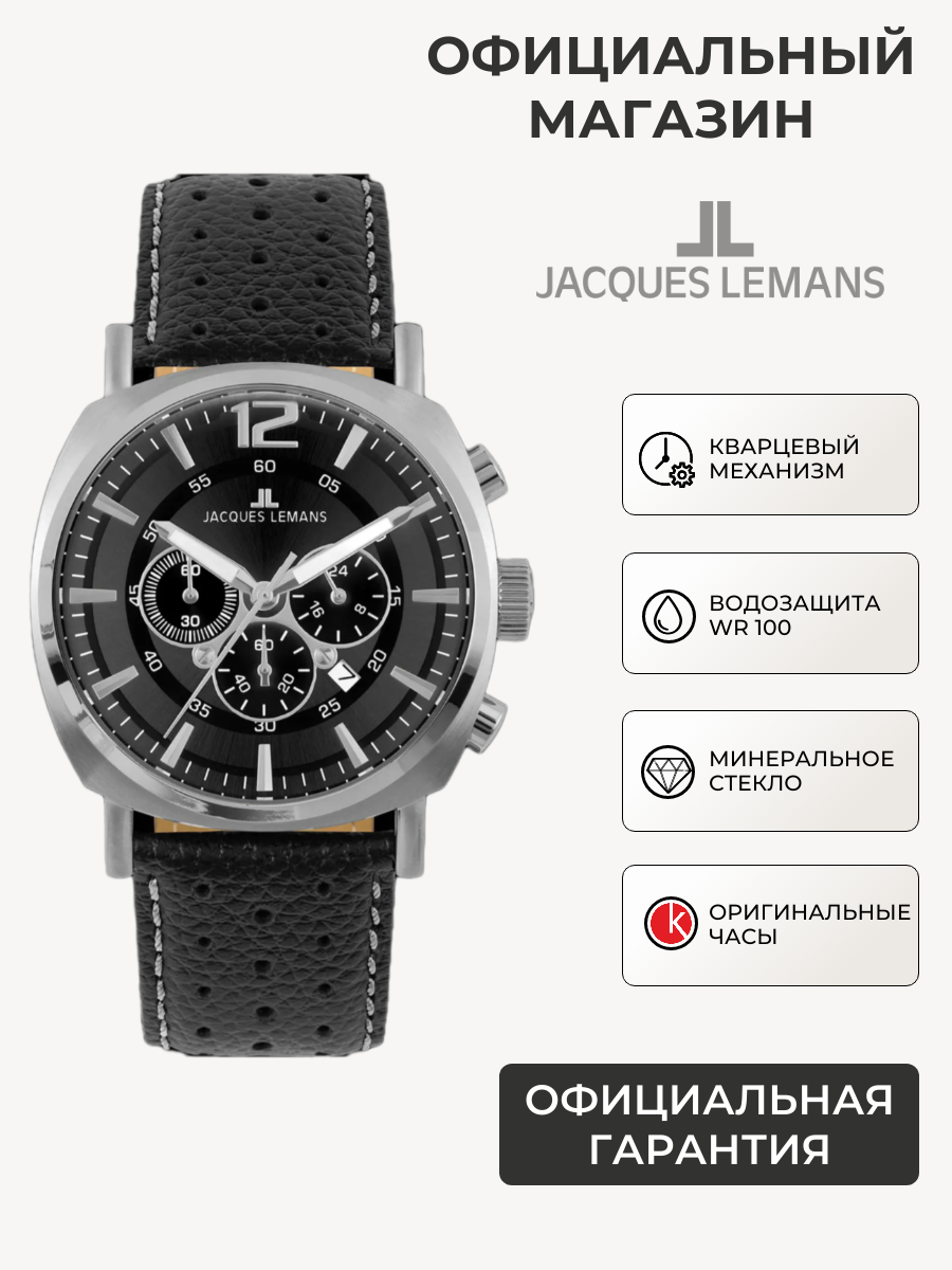 Наручные часы Jacques Lemans 1-1645T, мужские кварцевые спортивные часы Жак Леман с хронографом и датой на кожаном ремне интересное: