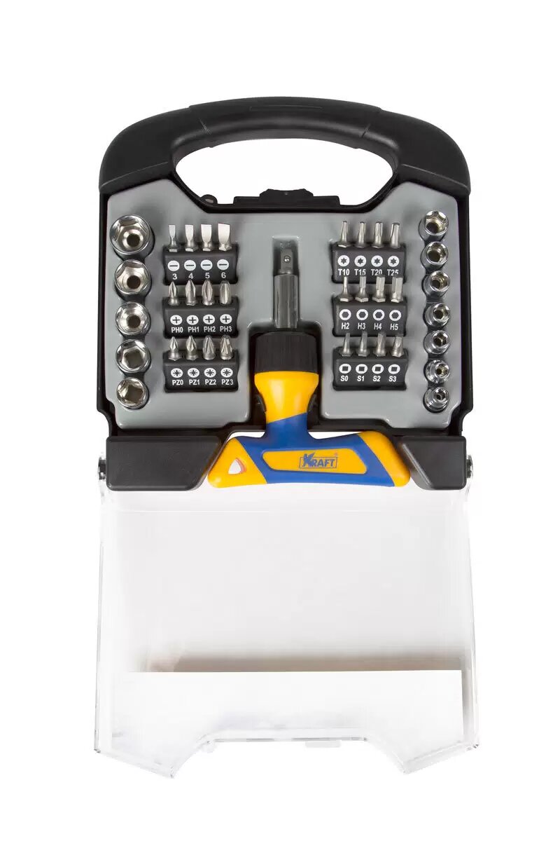 KRAFT KT 701039 Набор отверток (20 предметов) "KRAFT" (Т-образная отвертка с насадками-битами и торцевыми головками)