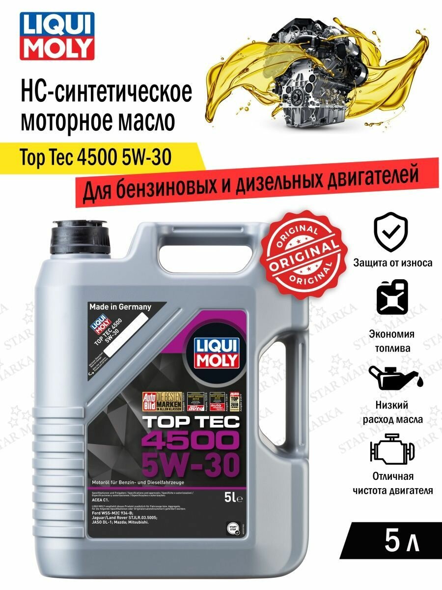 Моторное масло LIQUI MOLY Top Tec 4500 5W-30, HC-синтетическое, 5л (2378)