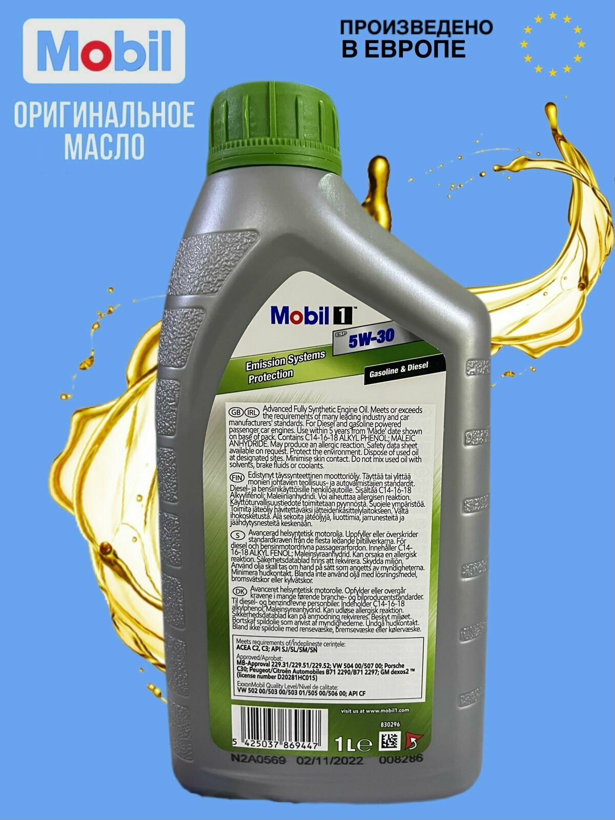 Синтетическое моторное масло MOBIL 1 ESP Formula 5W-30, 1 л, 1 кг
