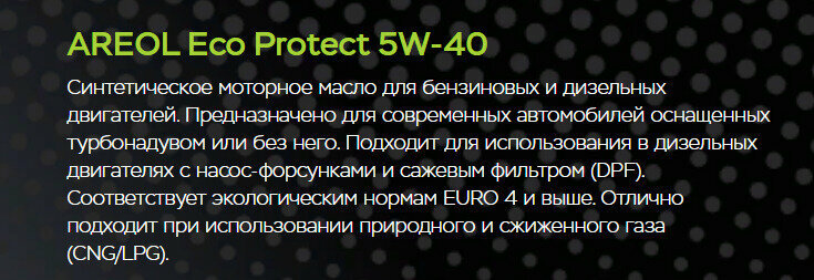 Сохранитьareol eco protect 5w40 (5l) масло моторное! синт.\acea c3, api sn/cf, vw 505.00/505.01, mb 229.51 интересное: