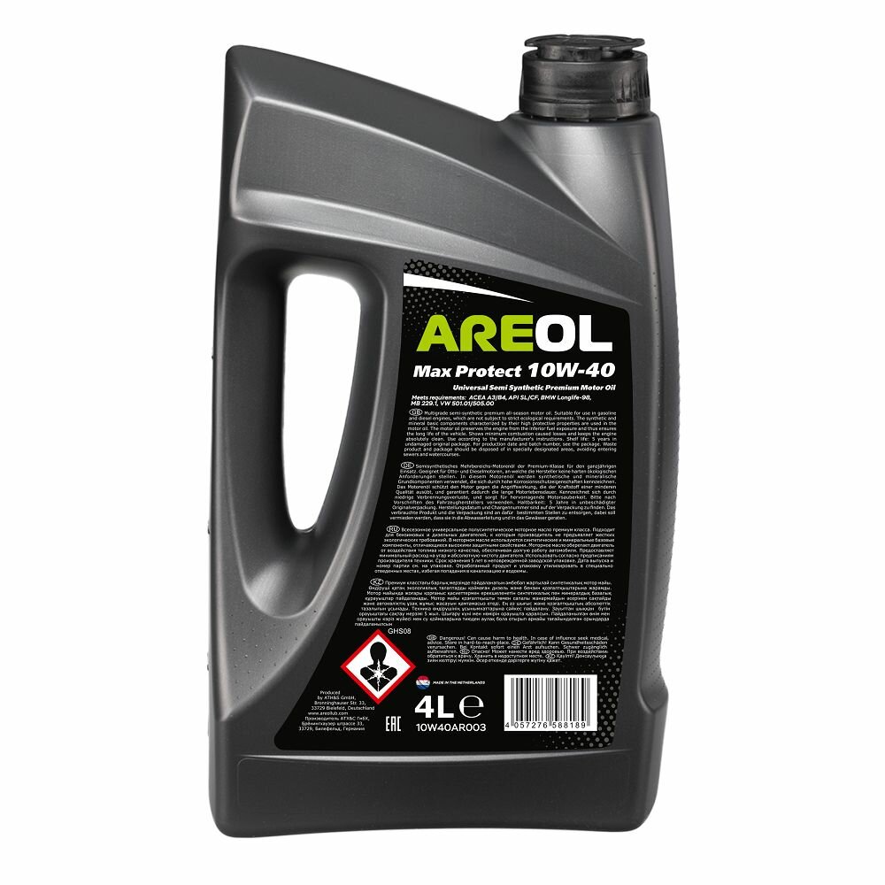 AREOL 10W40AR003 AREOL Max Protect 10W40 (4L) масло моторное! полусинт.\ACEA A3/B3, API SL/CF, MB 229.1, VW 501.01/505.00
