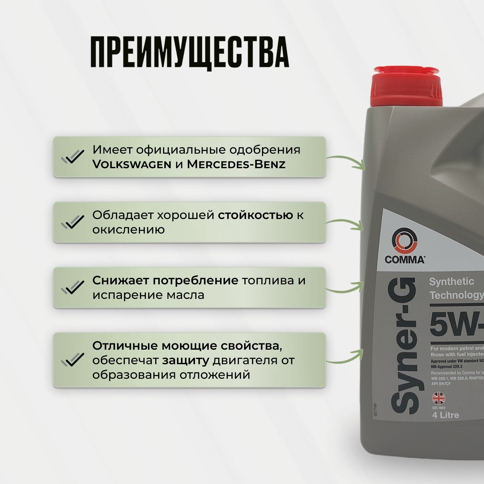 СохранитьCOMMA Comma 5W40 Syner-G (4L) Масло Мот.!Синacea A3/B4,Api Sn/Cf, Mb 229.1(3),Vw 502.00/505.00 интересное: