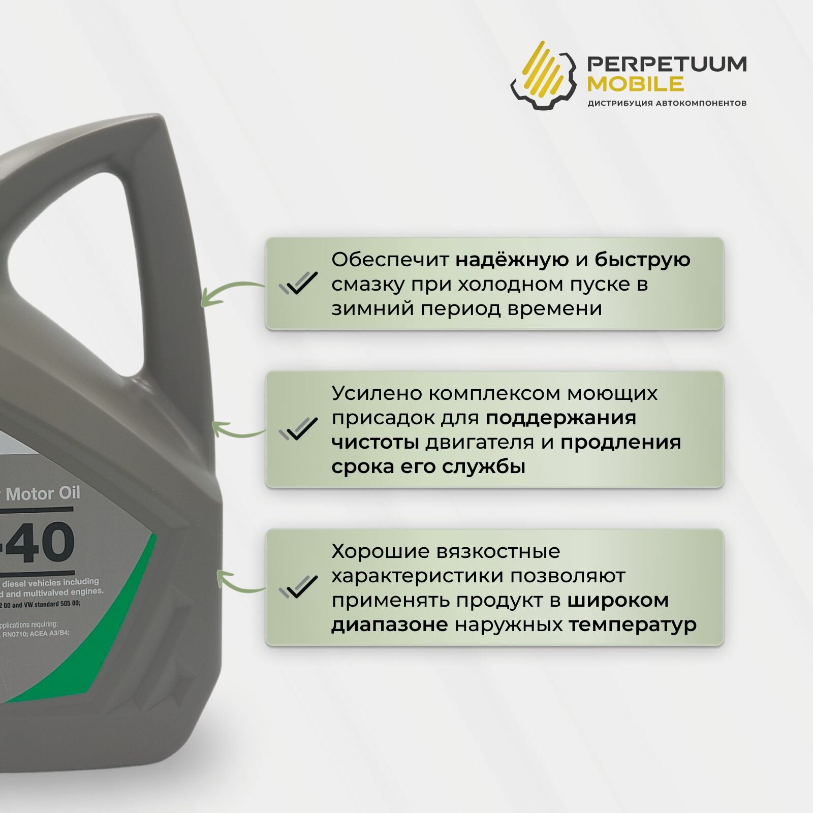 | Допуски OEM | VW 502.00/505.00 / MB 229.1 / Renault RN 0710 / MB 226.5 / PORSCHE A40 / MB 229.3 / Renault RN 0700 |