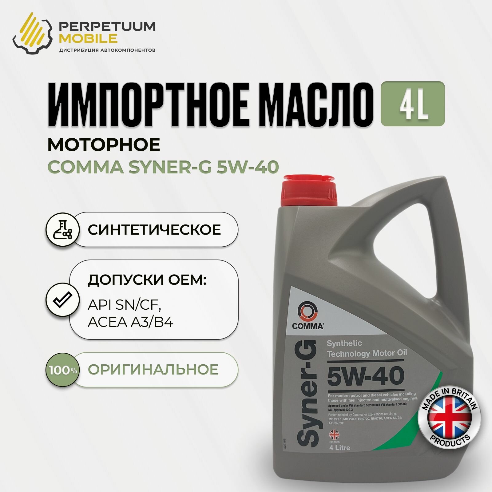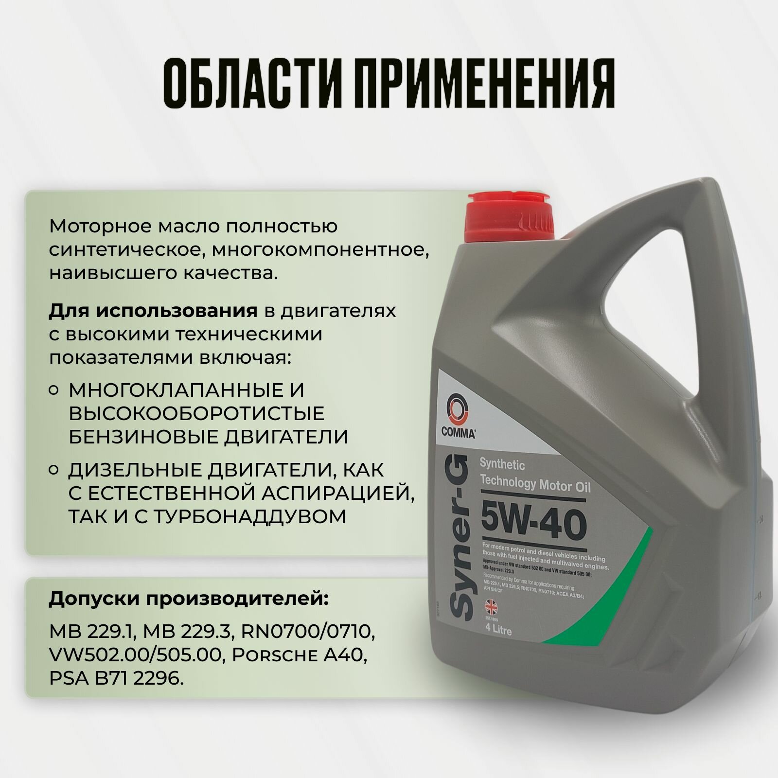 COMMA SYN4L COMMA 5W40 SYNER-G (4L)_масло мот.!син.\ACEA A3/B4,API SN/CF, MB 229.1(3),VW 502.00/505.00 1шт