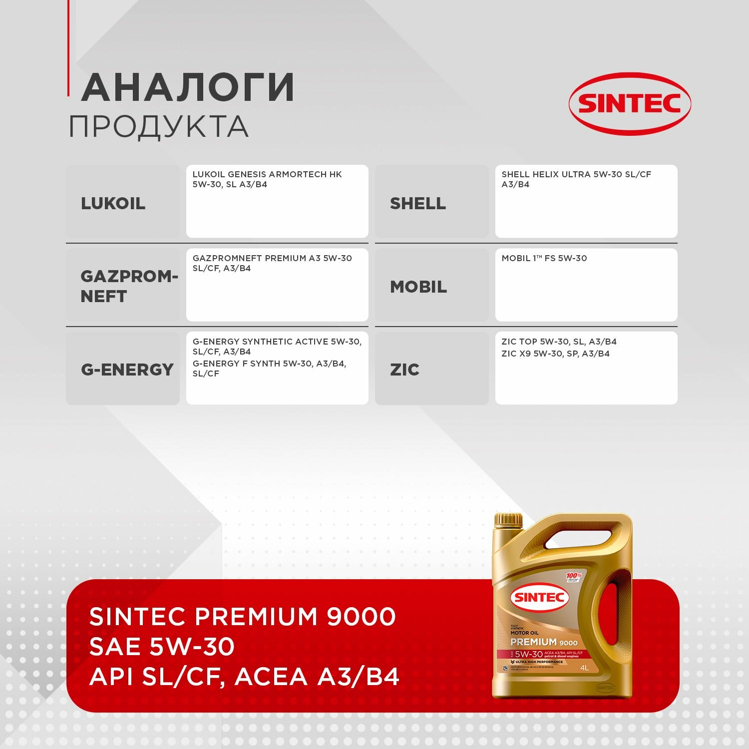 SINTEC Рњр°Сѓр»Рѕ Рјрѕс‚Рѕсђрѕрѕрµ 5W30 4Р» Sintec Premium 9000 A3/B4 Сѓрёрѕс‚Рµс‚Рёс‡Рµсѓрєрѕрµ
