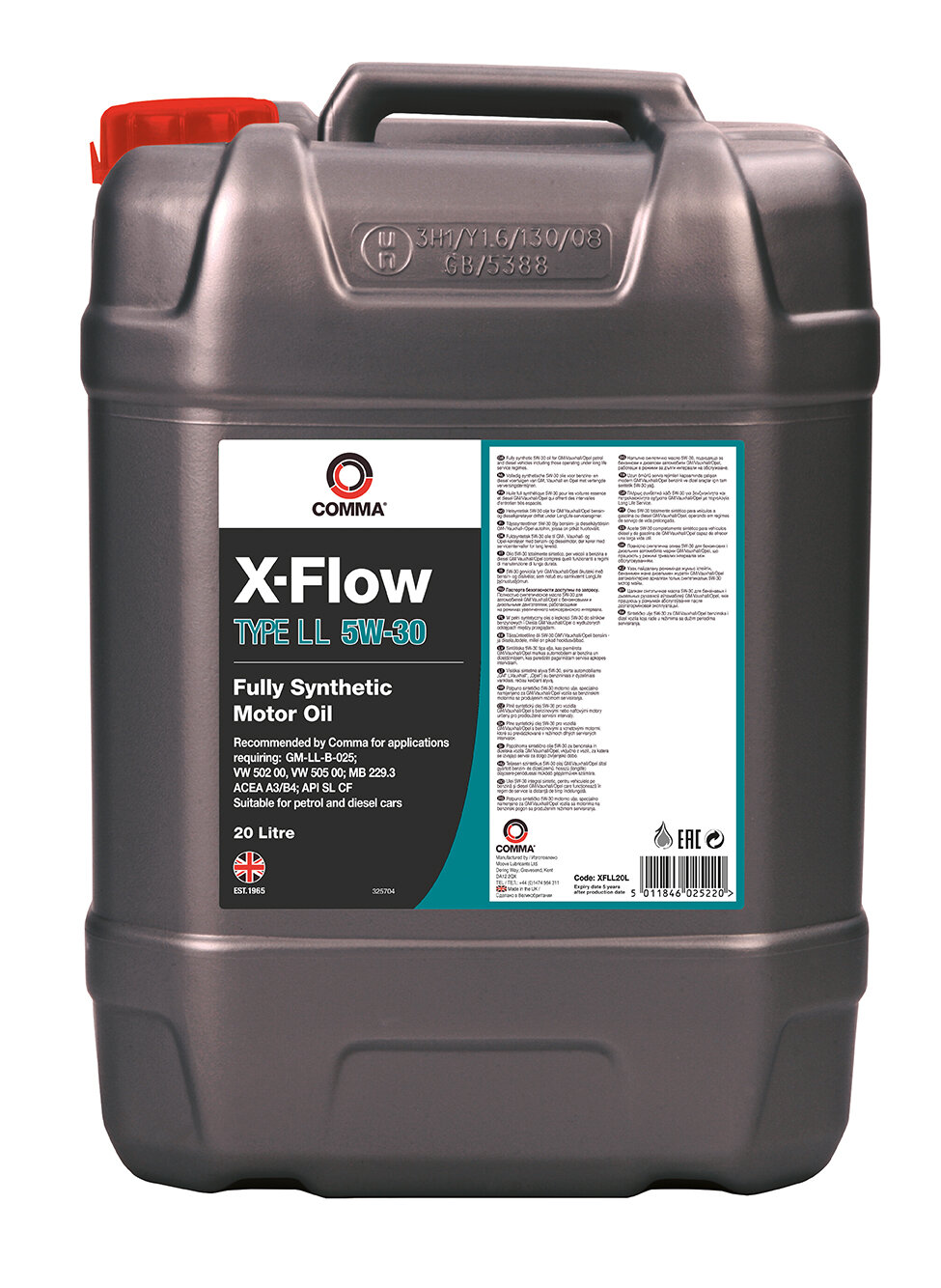 COMMA XFLL20L COMMA 5W30 X-FLOW TYPE LL (20L)_масло мот.! синт.\ A3/B4,API SL/CF,GM-LL-B025,MB 229.3,VW 502/505.00