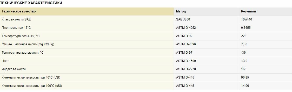 | Класс вязкости SAE | 10W-40 |
