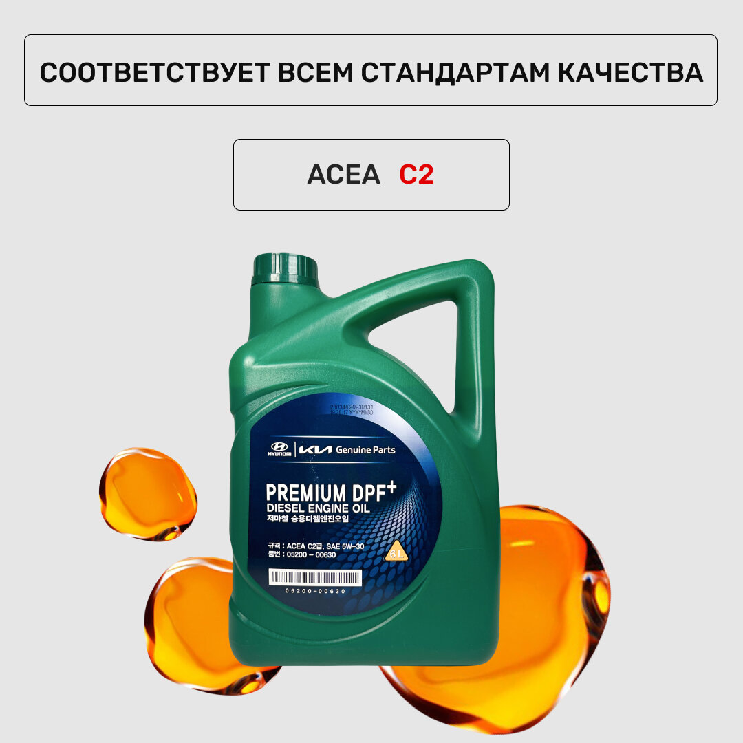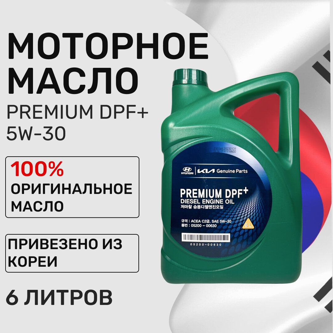 Premium Dpf+ Diesel Engine Oil 5W30 6L Масло Моторное Acea C2 Hyundai-KIA арт. 05200-00630