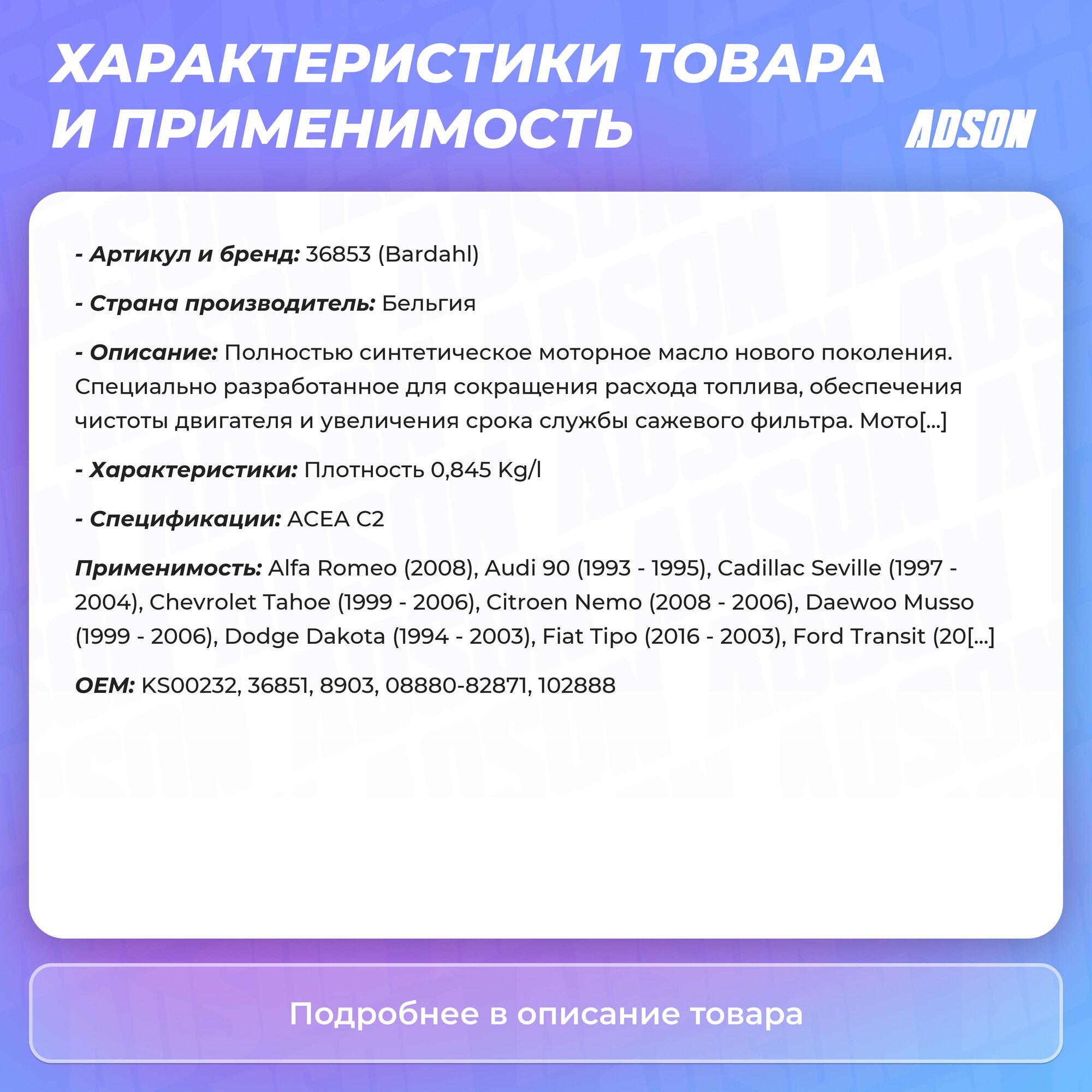 СохранитьМасло Трансмиссионное Atf 8G (5Л) 36873 Bardahl арт. 36873 интересное: