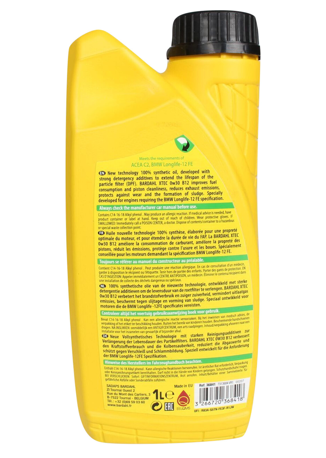 BARDAHL 36841 XTEC 0W30 B12 ACEA C2 (12) - BMW LL-12 FE 1L (специальное синт. моторное масло) BARDAHL