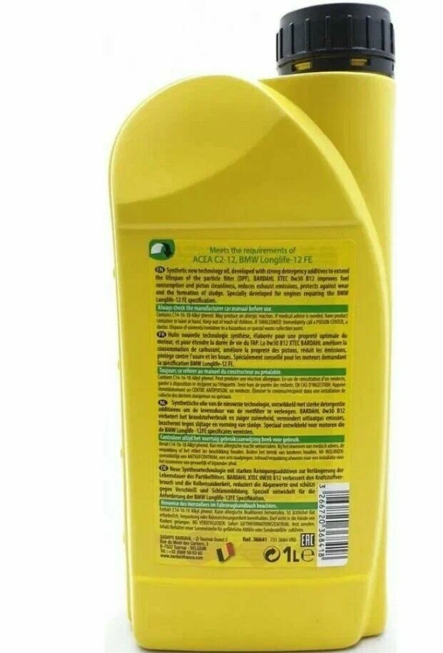 СохранитьBARDAHL 36841 XTEC 0W30 B12 ACEA C2 (12) - BMW LL-12 FE 1L (специаьное синт. моторное масо) BARDAHL интересное: