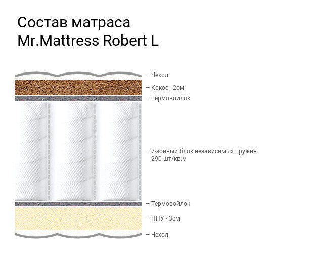 Матрас Mr.Mattress Robert L, Размер 75х190 см