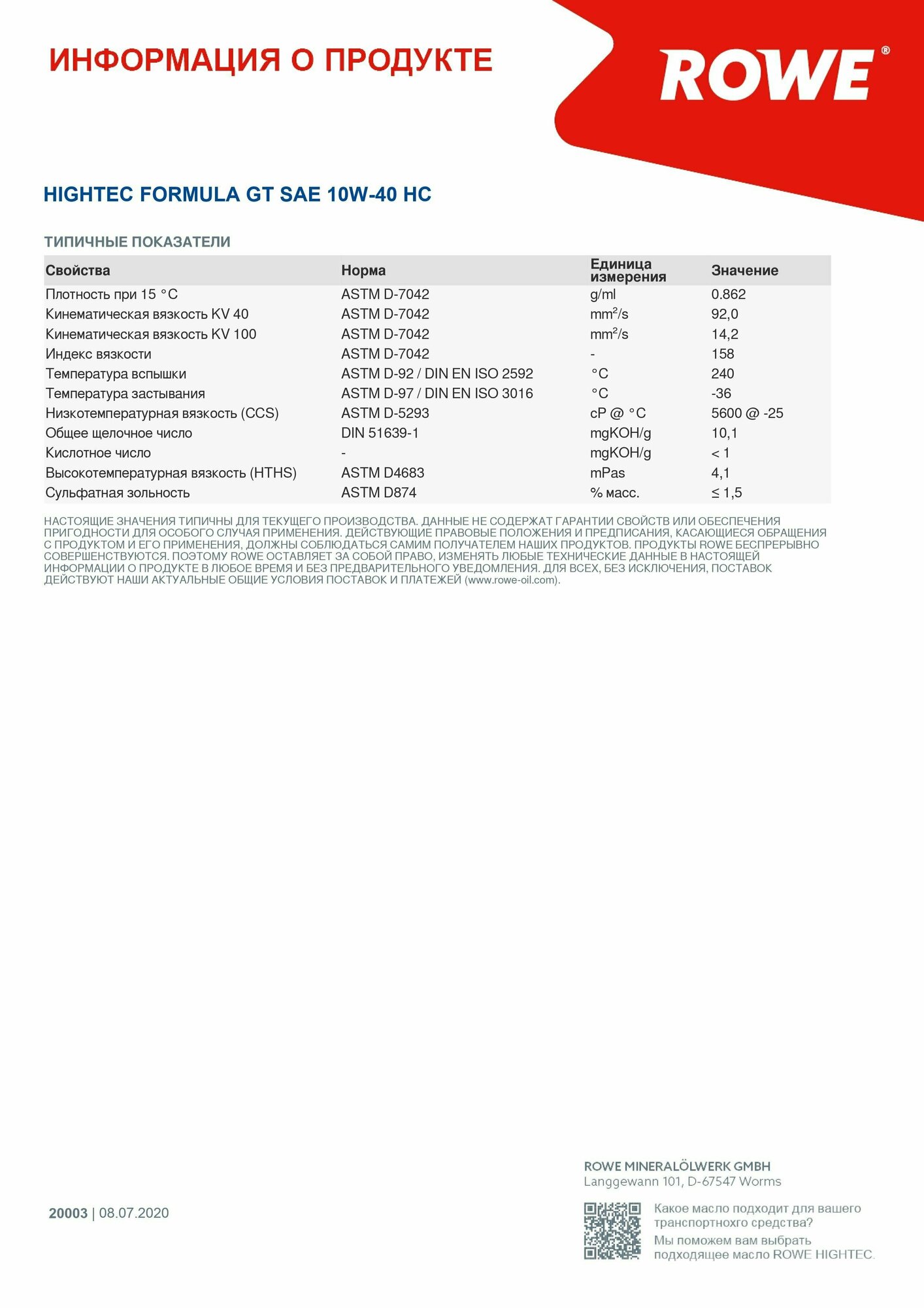 СохранитьROWE 20003-0200-99 ROWE HIGHTEC FORMULA GT SAE 10W-40 HC (20л.)ACEA E7, ACEA A3/B4, API CI-4, GLOBAL DHD-1, JASO DH-1 интересное: