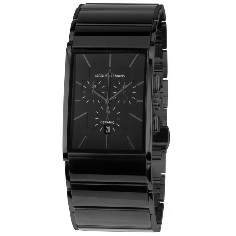 Наручные часы Jacques Lemans 1-1941G, прямоугольные керамические с хронографом и датой на комбинированном браслете (сталь и керамика)