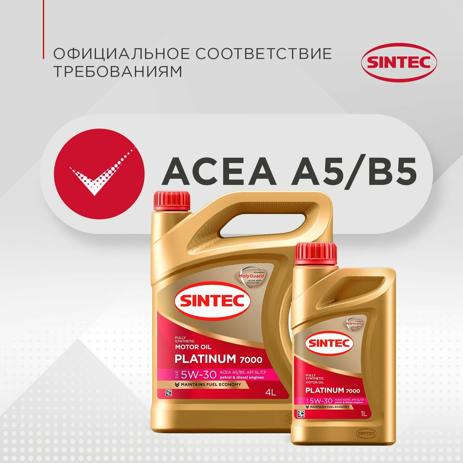 Синтетическое моторное масло SINTEC PLATINUM 7000 5W-30 A5/B5, 4 литра