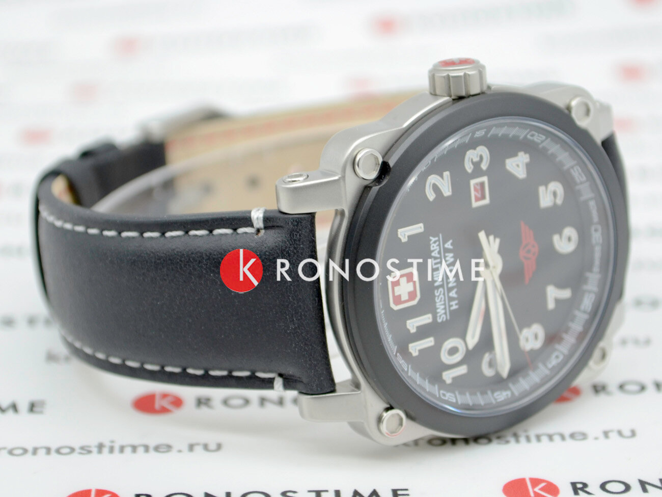 Швейцарские кварцевые часы Swiss Military Hanowa Mission SMWGB2101302 на кожанном браслете, с водозащитой 10 бар и международной гарантией от производителя