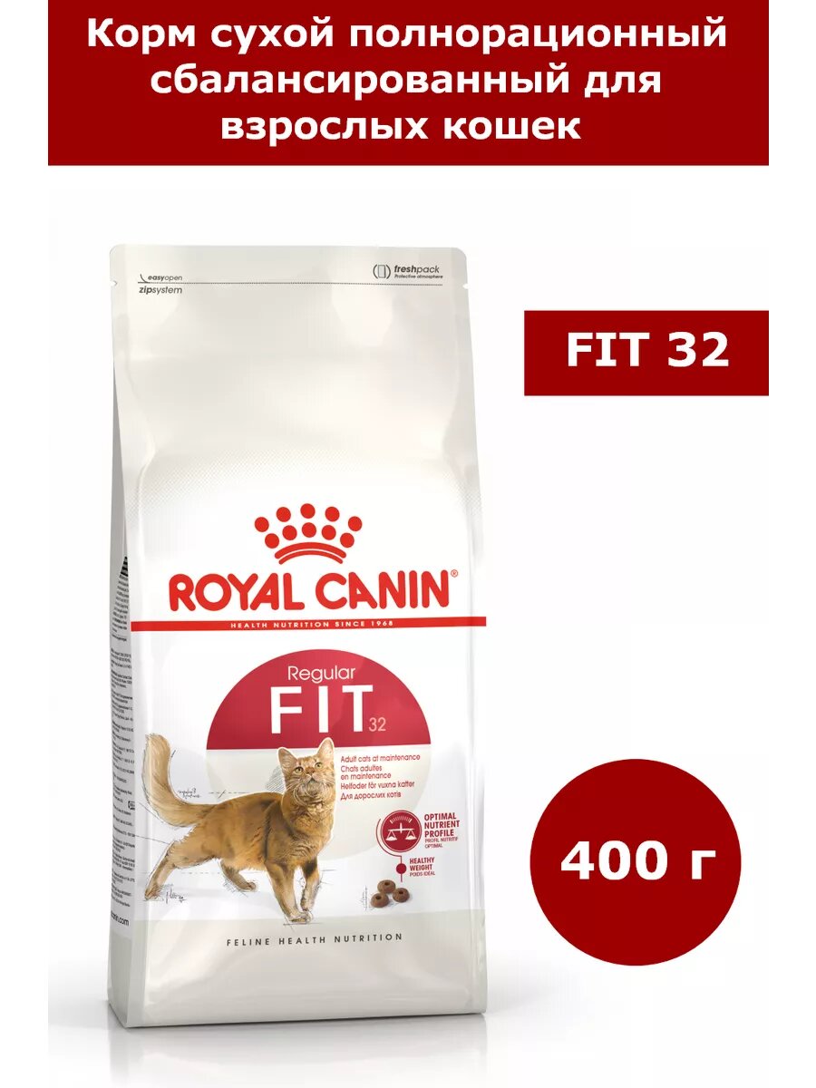 Корм для кошек Royal Canin Fit 32 (Фит 32) Корм сухой сбалансированный для взрослых умеренно активных кошек от 1 года, 0,4 кг