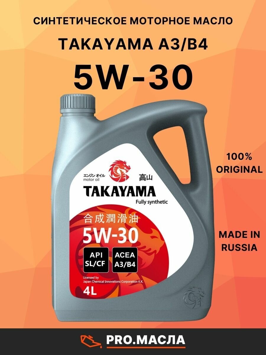 Купить TAKAYAMA Рњр°Сѓр»Рѕ Рјрѕс‚Рѕсђрѕрѕрµ Сѓрёрѕс‚Рµс‚Рёс‡Рµсѓрєрѕрµ "Motor Oil 5W-30", Api Sl/Cf 4Р» (Рїр»Р°Сѓс‚Рёрє)