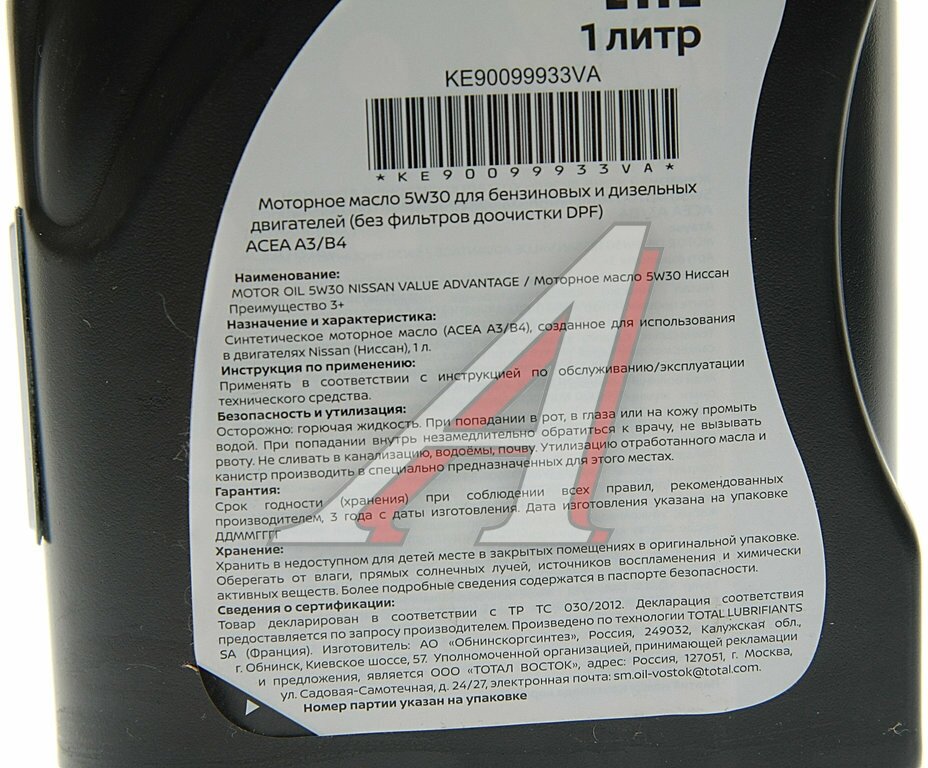 NISSAN KE90099933VA Масло моторное NISSAN Value Advantage синт. 5W-30 1л.