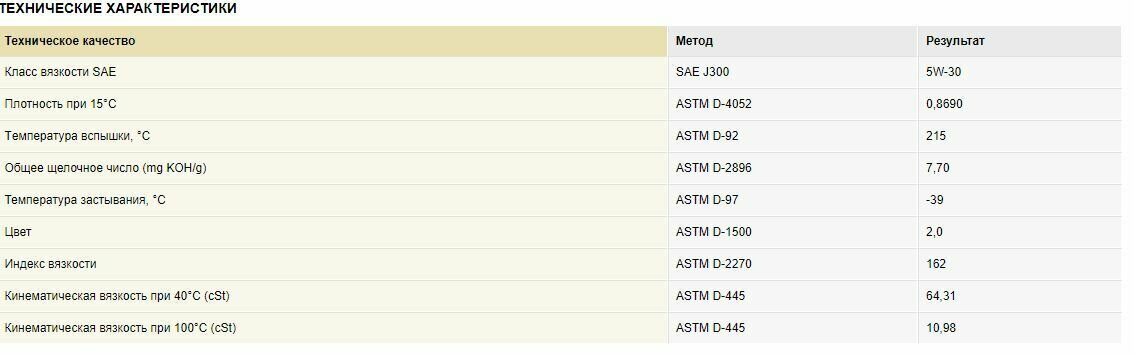 | Класс вязкости SAE | 5W-30 |